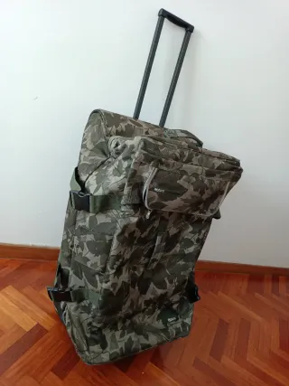 Se vende Maleta trolley de la marca Billabong con un diseño de camuflaje. GRAN VOLUMEN, unos 100 litros. Roces normales del uso y cremallera algo recia. - Diseño de camuflaje en tonos verdes y marrones. - Asa extensible y ruedas para facilitar el transporte. - Compartimentos interiores para organizar tus pertenencias.