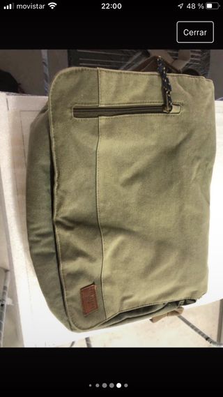 Mochila Billabong ocre,negra y gris.cremallera lateral y otra paralela a la principal que está rota.bolsillos laterales. Espacio para portátil..su precio está en unos 60€