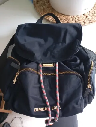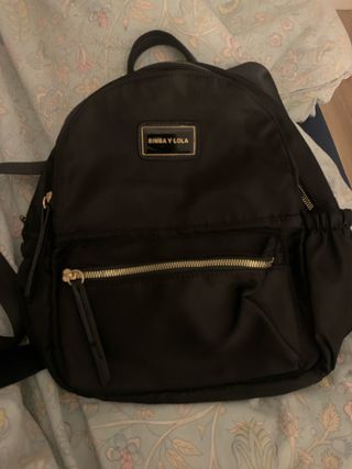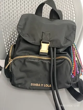 Bolso o mochila en color negro de la marca BIMBA Y LOLA. Cuenta con una correa ajustable y varios compartimentos. - Correa con logo de la marca. - Cierres de cremallera. - Detalle de tiradores en las cremalleras.