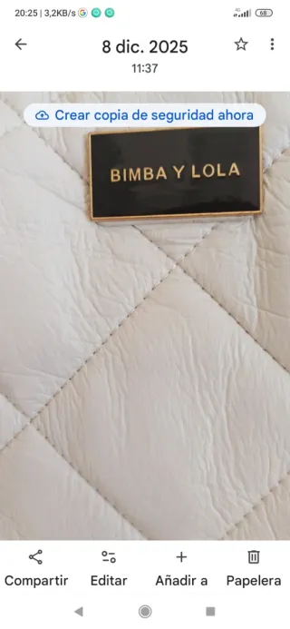 Bolso Bimba y Lola con un diseño elegante y moderno. Perfecto para complementar cualquier atuendo.Color vainilla.Los herrajes, como se ven en las fotos, estan perfectos, asi como el resto.Presenta alguna ligera mancha por la parte de atrás.Una vez colgado, no se ve.Muy cuidado - Material texturizado. - Cierre metálico. - Correa ajustable. Seriedad ( podéis ver mis valoraciones ) Más cosas interesantes en mi perfil