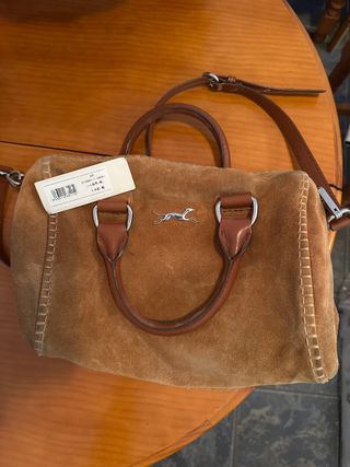 Bolso de mano o bandolera de la marca Bimba y Lola. - Material: ante. - Detalle de logo metálico de galgo. - Correa ajustable.