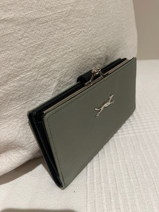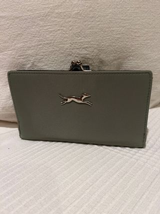 Billetero o monedero de la marca Bimba y Lola. - Diseño con cierre de clip. - Detalle metálico de un galgo. - Color gris.