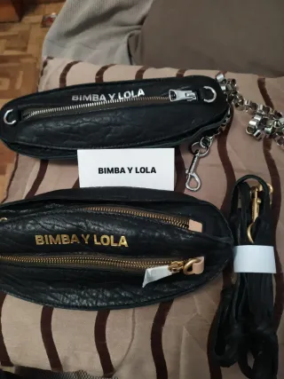 Riñonera bandolera negra de Bimba y Lola Lleva algunas partes en piel Muy poco uso Bolsa de la marca para guardarla