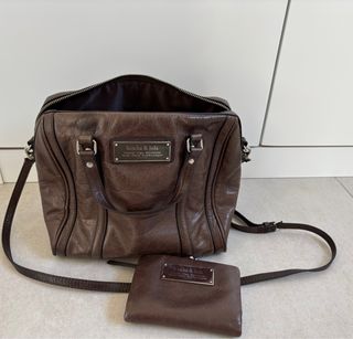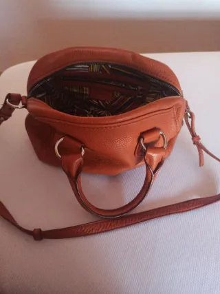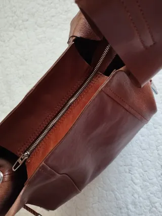 Bolso de mano y bandolera de la marca Bimba y Lola. - Material: Piel. - Color: Marrón. - Interior forrado con estampado. - Cierre con cremallera. - Asas cortas y correa larga ajustable.