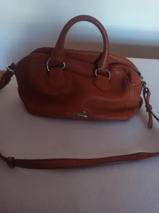 Bolso piel bimba y lola de piel . Tiene cadena para llevar de mano o al hombro y correa para cruzar . 33x18 .está en muy bien estado .original .logo y cadena plateado