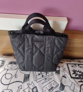 Bolso Bimba y Lola de color negro con un diseño acolchado. - Material textil. - Asas de mano. - Cierre de cremallera. - No incluye asa larga