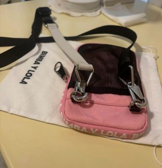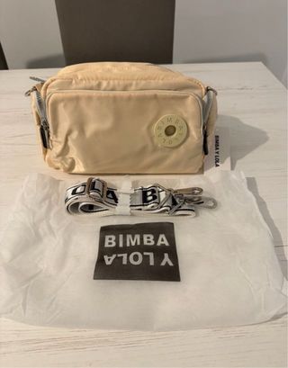 Bandolera mini de la marca BIMBA Y LOLA en color beige. - Cierre de cordón. - Asa de mano. - Correa ajustable. Precio al que lo compre. Comprado a primeros de febrero Ticket de compra.