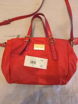 Bolso de nylon en color rojo. Nuevo con etiqueta. - Cierre con cremallera. - Asa de mano y correa ajustable. - Detalle de placa dorada con el logo de la marca.