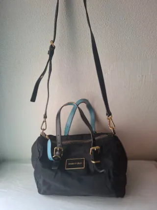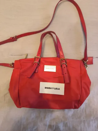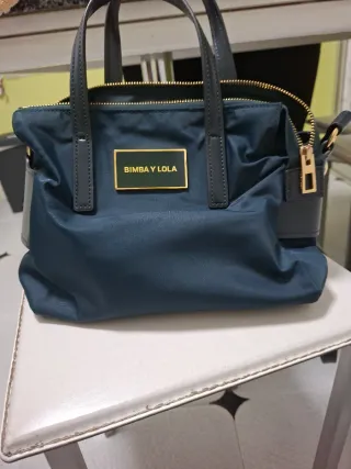 Bolso de mano y bandolera de la marca Bimba y Lola. Poco uso, esta como nuevo. - Material textil tipico de bimba y lola - Cierre con cremallera. - Dos asas cortas y correa bandolera ajustable. - Logo metálico de la marca en la parte frontal.
