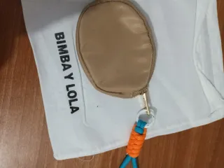 Monedero de la marca BIMBA Y LOLA. 1 solo uso. Regalo el llavero que tiene colgado....que no tiene nada que ver con el monedero - Color beige con detalles en azul. - Cierre de cremallera.