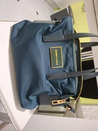 Bolso de mano y bandolera de la marca Bimba y Lola. - Fabricado en nylon. - Detalles en color azul. - Placa dorada con el logo de la marca.