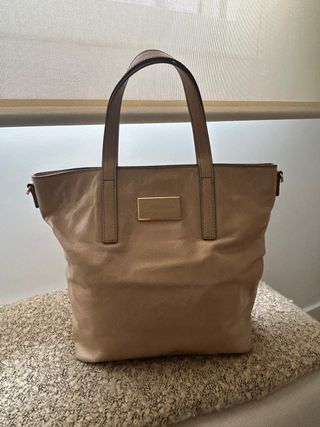 Bolso grande de piel en color marrón (Original) Tiene desperfectos en una de las asas, se puede apreciar en las fotos por lo demas está impecable. Tiene muy poco uso. - Diseño con logo grabado. - Asas de mano. - Interior espacioso.