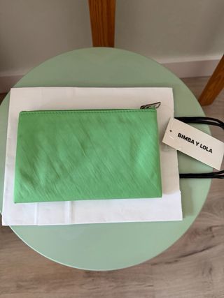 ✨Sin estrenar,con etiqueta 🏷️PDV:55€ Exterior de nylon Estructura blanda Medidas aproximadas: 17,5 x 10,5 x 1,5 cm Logo metálico BIMBA Y LOLA Acabados metálicos plateados Tarjetero interior Cierre con cremallera logo grabado BIMBA Y LOLA Color: Verde Bolsa no incluida 🔛Activado descuento por lote