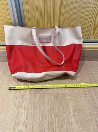 Bolso de mano Bimba y Lola con un diseño bicolor. - Combinación de colores rosa y rojo. - Asa de mano. - Detalle de placa con el logo de la marca. Precio negociable
