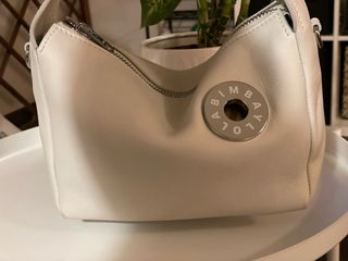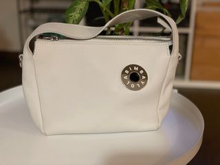 Bolso de mano Bimba y Lola en color blanco. - Diseño moderno y elegante. - Cierre de cremallera. - Detalle circular con logo en la parte frontal.