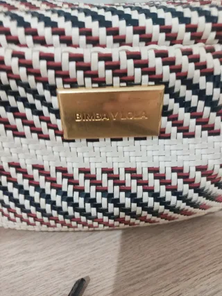 Bolso de la marca Bimba y Lola con un diseño de rayas. - Tejido de rafia. - Detalles en piel. - Cierre de cremallera. - Correa ajustable.