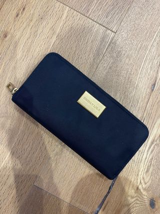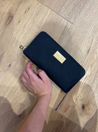 Preciosa cartera monedero en color negro. Está en buen estado y lista para usar. - Diseño elegante y compacto. - Cierre de cremallera. - Tiene un pequeño logo metálico.