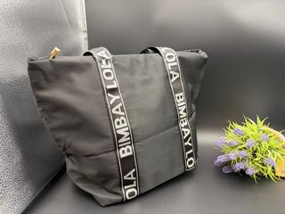 Bolso nylon marrón Bimba y Lola, logo anterior. Original. Muy poco uso. Medidas. Largo 40 cm. Base 15 cm. Alto 26 cm. Tiene bandolera de poner y quitar bolsillos interiores.