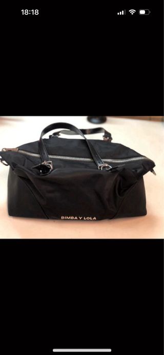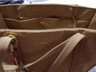Bonito bolso BIMBA Y LOLA original color taupe-verde.Bolso de mano y bandolera ajustable grabada con la marca. Material : Nylon lavable. Básico de armario. Muy bien conservado. Venta en persona. Medidas: 28x25x15cm