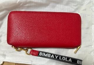 Cartera de piel en color rojo de Bimba y Lola. Cierre de cremallera. - Material: Piel. - Color: Rojo. - Detalle de logo dorado. - Incluye asa corta con mosquetón.