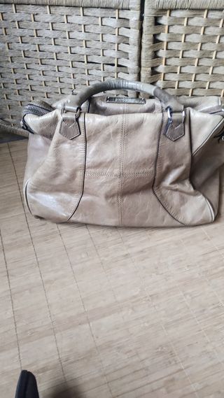 Bolso de piel beige de Bimba y Lola. Sin apenas uso. Ancho 35 Alto 30 Fondo en la base 13 aprox.