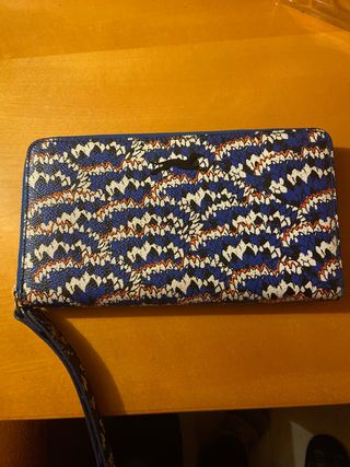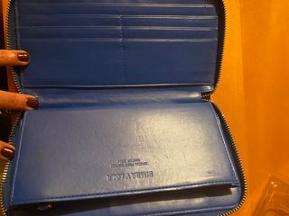 Monedero tono azul con porta monedas con cremallera, y varios departamentos para tarjetas y billetes