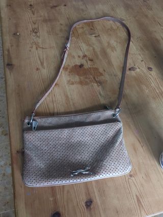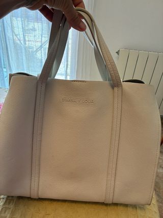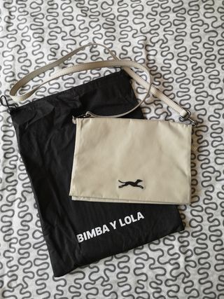 bolso gris claro bimba y Lola con asa para colgar. Varios departamentos para guardar cosas. Más bolsos en mi perfil.