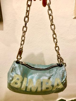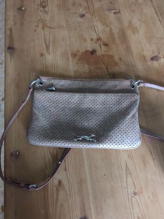 Bolso de mano o bandolera de la marca Bimba y Lola. - Diseño perforado. - Detalle de un perro plateado. - Cierre con cremallera. - Correa ajustable.