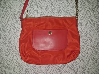 Precioso bolso bandolera de Bimba y Lola, en color rojo. Está en muy buen estado. - Asa bandolera regulable y desmontable con cadena dorada. - Bolsillo frontal con cierre de botón a presión. - Cierre de cremallera superior.