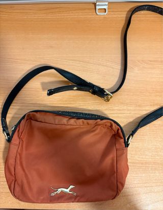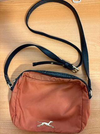 Precioso bolso bandolera de Bimba y Lola oficial, en tonos marrones y anaranjados. Es un bolso pequeño y ligero, ideal para el día a día. - Asa bandolera regulable. - Cierre de cremallera. - Detalle metálico con galgo.