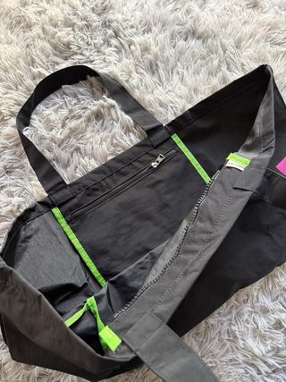 Bolso grande de la marca Bimba y Lola. - Diseño en color negro con detalles en rosa. - Logo de la marca en relieve en la parte frontal. - Asas cómodas para llevar al hombro.