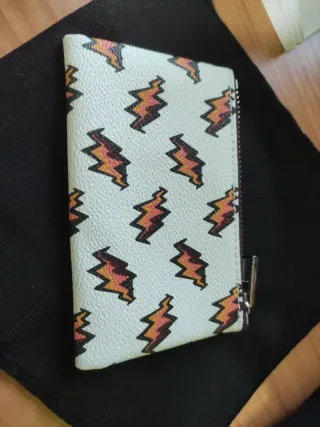 Cartera con un divertido estampado de rayos en varios colores. - Diseño llamativo y original. - Cierre de cremallera. Cartera de Bimba & Lola, nueva, a estrenar. Original. Se vende porque no se utilizó. Está intacta. Se entrega con su funda, tal y como se ve en las fotos. Ideal para regalar y más económica. Su precio era de 30€ (como se ve en la foto).
