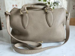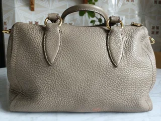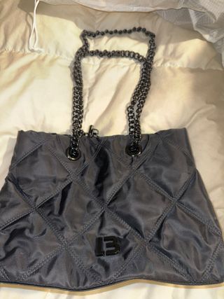 Bolso de Bimba & Lola exterior nailon y pvc. Aspecto tela de gabardina color marrón topo, muy agradable. Tiene cierre de cremallera y dos bolsillos internos, uno con cremallera. Lo puedes llevar al hombro o de mano. Usado 4 veces. Está como nuevo