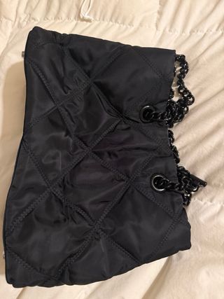 Bolso pequeño de nailon de Bimba & Lola. Con cadena larga y ajustable para llevar al hombro. Tiene cierre de cremallera y un bolsillo interior