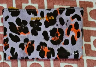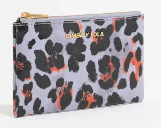 Monedero con un llamativo estampado de leopardo en tonos lilas y negros, con detalles en coral. Dentro tiene para meter tarjetas. - Cierre de cremallera dorada. - Logo de la marca en dorado. -Medidas: 14x9 cm.