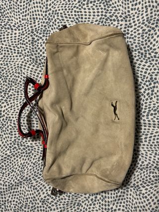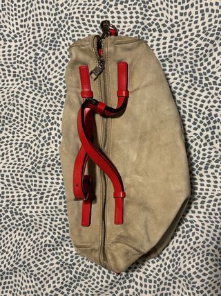 Bolso de la marca Bimba y Lola. - Material de ante. - Detalles en piel roja y negra. - Adorno metálico de figura animal.