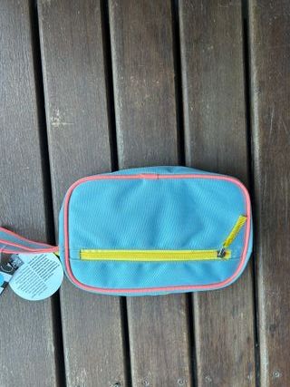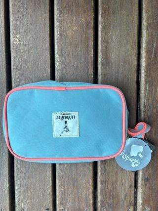 Neceser original Busquets – La Volatil, en color azul con vivos coral y cremallera amarilla. Producto nuevo a estrenar, con etiquetas y forro interior de plástico amarillo. Ideal como estuche, neceser de viaje o para organizar accesorios. 📏 Medidas aproximadas: 22 x 14 x 6 cm 📍 Entrega en mano o envío.