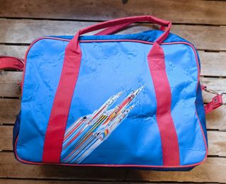 Mochila Busquets vintage de los años 80 con bonita serigrafía de cohetes espaciales. En buen estado. Colores azul y rojo. Más en mi perfil.