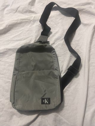 Mochila cruzada Calvin Klein en color gris. Diseño moderno y práctico. - Correa ajustable. - Bolsillo frontal con cremallera. - Logo de la marca en la parte frontal.