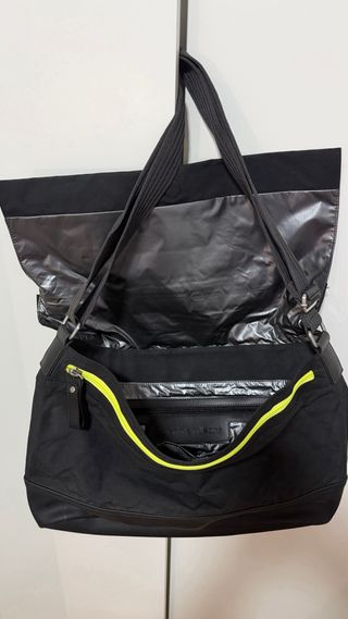 Bolso de hombro Calvin Klein en color negro. Diseño moderno con asas anudadas. - Material: Nylon - Cierre: Cremallera - sin estrenar - sin etiqueta Su precio fue de 120€
