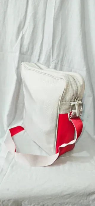 Bolso de hombro con un diseño moderno y práctico. - Combinación de colores gris y rojo. - Correa ajustable para mayor comodidad. - Bolsillo exterior con cremallera.