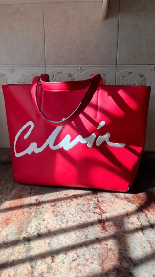 Bolso tote de la marca Calvin Klein en color rojo. - Diseño moderno y espacioso. - Asas cómodas para llevar al hombro o en la mano.
