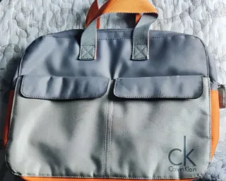 Práctica bolsa para transportar tu portátil o iPad. - Diseño moderno en tonos grises y naranjas. - Compartimentos frontales con solapa. - Logo de Calvin Klein visible.