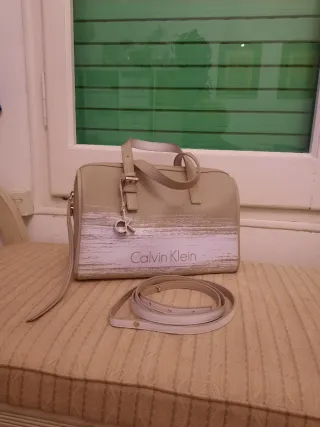 Bolso Calvin Klein en color beige, con muy poco uso y en excelente estado. - Diseño acolchado con costuras verticales. - Logo metálico de la marca. - Correa ajustable.