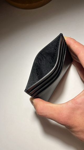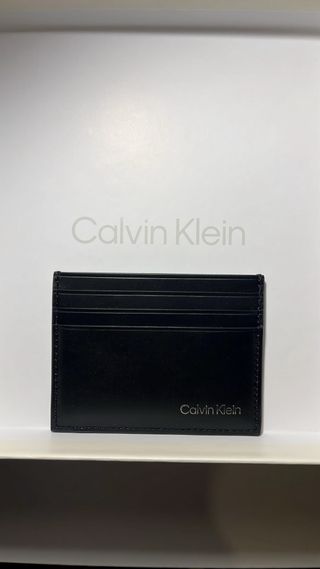 Elegante tarjetero de la marca Calvin Klein. - Diseño minimalista. - Acabado liso. - Múltiples ranuras para tarjetas.