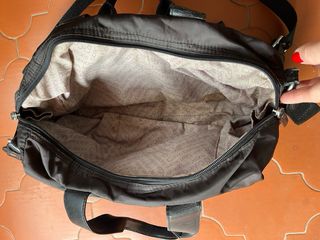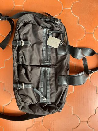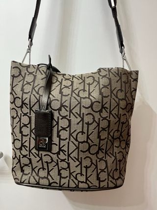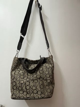 Bolso grande de la marca Calvin Klein. - Material textil resistente. - Detalles en piel. - Múltiples compartimentos con cremallera. - Correas ajustables.