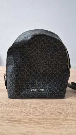 Mochila de la marca Calvin Klein en color negro. Diseño moderno y práctico. - Material: Piel sintética. - Cierre principal con cremallera. - Bolsillo frontal con cremallera. - Correas ajustables. Esta en buen estado, tiene algún pequeño desgaste del uso pero que casi no se nota.