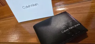Cartera billetera Calvin Klein en color negro. Diseño moderno y funcional. - Múltiples compartimentos para tarjetas. - Amplio espacio para billetes y monedas. Cartera Calvin Klein auténtica, color negro. Es compacta y elegante. Unisex - Tiene cierre de cremallera. - Un compartimento principal y uno más pequeño. Compartimento para tarjetas y monedas, usada pero en muy buen estado. Auténtica. Costó 30 euros, vendo por 3 euros no negociables. Saludos