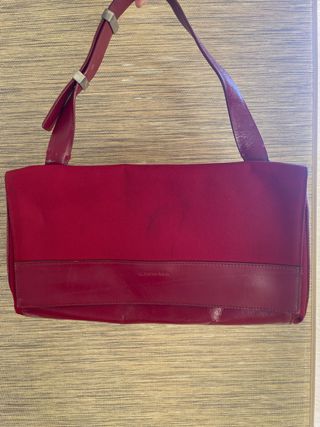 Bolso de mano o hombro Calvin Klein en color rojo. - Diseño alargado y elegante. - Correa ajustable con detalles metálicos. - Combinación de tela y piel. - Logo de la marca visible.