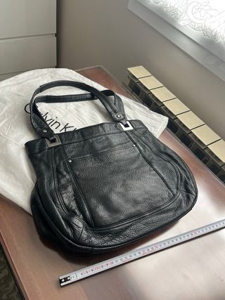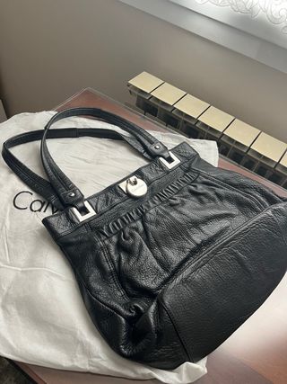 Bolso de hombro Calvin Klein negro. Un accesorio elegante y espacioso para el día a día. Muy cómodo, tacto muy agradable. -Original: Calvin Klein - Color: Negro. - Cierre con broche un poco desgastado en la parte interior por el roce se adjunta fotografía - Asa de mano. - Detalle de fruncido frontal.